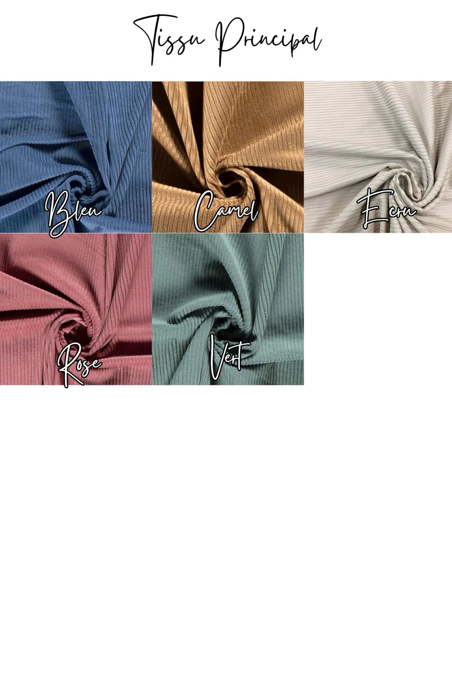 Velours cÎtelé (coloris au choix) + rabat en double gaze (coloris au choix)